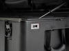 The box has a gas-cushioned opening mechanism that keeps the lid open while you organize your gear, as well as wheels for easy transport on the ground.