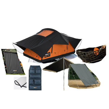 Detta paket innehåller: TentBox Lite 2.0 - Fantastiskt allround taktält - TentBox Universal sidomarkis - Markis för bilen - TentBox Lite Windbr...