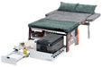 • Stor utdragbar låda med kylskåp. Extramodul med handfat och elektrisk pump med duschliknande pip. Dedikerat utrymme för ryggsäck eller all utrustning du annars behöver.