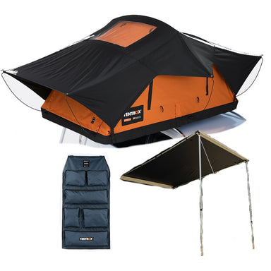 Detta paket innehåller: TentBox Lite 2.0 - Fantastiskt allround taktält - TentBox Universal sidomarkis - Markis för bilen - TentBox Lite Windbr...